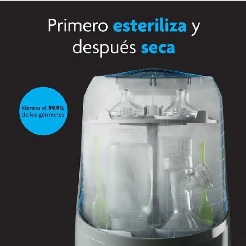 - 3 en 1: Lava, esteriliza y seca automáticamente biberones, piezas de extractores y accesorios en un solo paso sencillo.