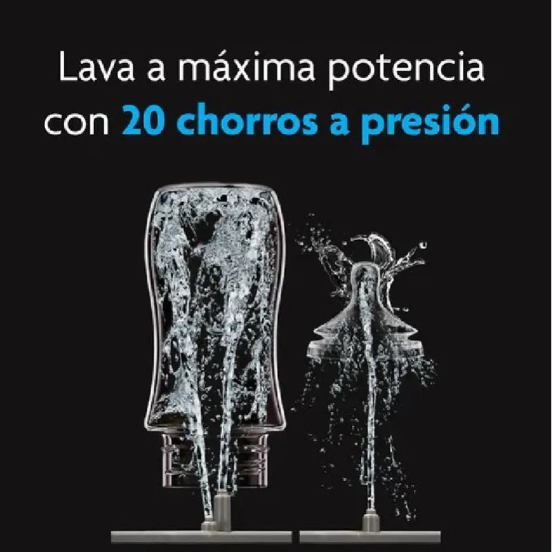 - Potente Lavado: Equipado con 20 chorros de alta presión que eliminan todos los residuos de leche y fórmula.