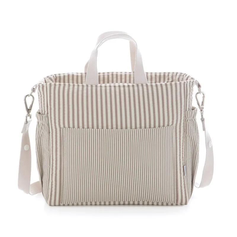 El Bolso Maternal Pack de Cambrass de gran amplitud con capacidad para guardar todo lo que necesitas para tu bebe. Su sistema de asas cortas lo hace útil tanto como bolso de mano o maletín así como de bandolera o incluso para el carro, ya que el asa larga dispone de clips para poder colgar del cochecito. El tejido interior (resinado) con el que está confeccionado el bolso cuenta con un acabado impermeable que sumado a su base rígida aporta estabilidad evitando que pierda su forma tanto lleno como vacío e incluso después del lavado. Este bolso cuenta con prácticos bolsillos interiores y exteriores para una perfecta organización de los accesorios. El cierre del bolso es con cremallera YKK de larga duración.