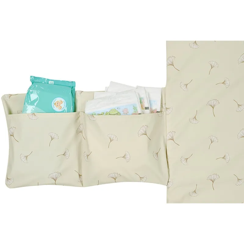 A veces, cambiar a tu peque cuando estás fuera de casa puede ser todo un desafío. No siempre encuentras cambiadores disponibles y, por supuesto, quieres que tu bebé esté cómodo. ¡No te preocupes! Las alfombrillas cambiadoras de viaje de Meyco Baby son la solución perfecta. Dondequiera que estés, podrás cambiar a tu bebé de forma segura y cómoda. La alfombrilla cambiadora tiene un bonito y sereno estampado de hojas de ginkgo. ¡Así que salís de casa con estilo, tú y tu pequeño aventurero! Esta alfombrilla impermeable es perfecta para viajar. Gracias a sus prácticos bolsillos, también tendrás siempre a mano todo lo necesario, como pañales y toallitas. ¿Ideal, verdad? El exterior de la alfombrilla está hecho de 100% poliuretano, mientras que el interior y el relleno son de 100% poliéster. Esto hace que la alfombrilla sea impermeable y muy fácil de limpiar con un paño húmedo. ¿Ya has terminado de cambiar? Basta con pasarle un paño húmedo, doblarla en un tamaño práctico, cerrarla con el cierre de velcro ¡y de vuelta al bolso! Así de fácil puede ser.