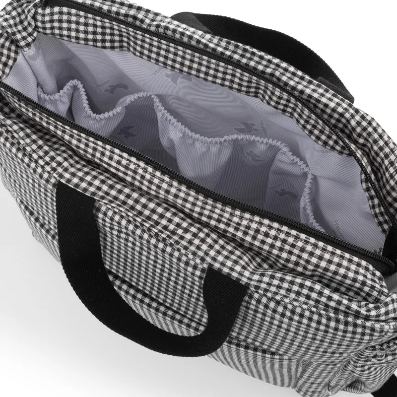 El Bolso Maternal Pack de Cambrass de gran amplitud con capacidad para guardar todo lo que necesitas para tu bebe. Su sistema de asas cortas lo hace útil tanto como bolso de mano o maletín así como de bandolera o incluso para el carro, ya que el asa larga dispone de clips para poder colgar del cochecito. El tejido interior (resinado) con el que está confeccionado el bolso cuenta con un acabado impermeable que sumado a su base rígida aporta estabilidad evitando que pierda su forma tanto lleno como vacío e incluso después del lavado. Este bolso cuenta con prácticos bolsillos interiores y exteriores para una perfecta organización de los accesorios. El cierre del bolso es con cremallera YKK de larga duración.