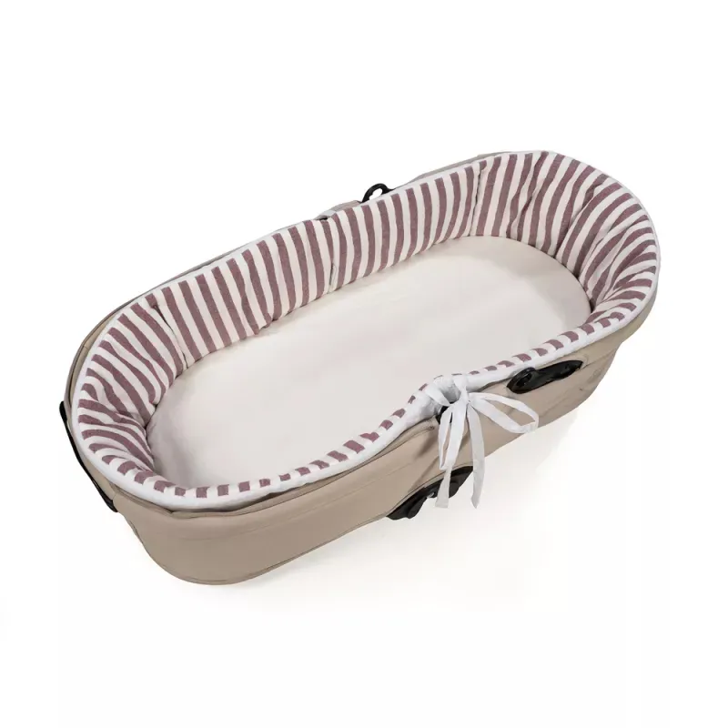 Diseño envolvente y seguro: El cubre cuco con varillas se adapta perfectamente al interior del capazo gracias a sus lazos ajustables, garantizando una sujeción firme y un acabado elegante.