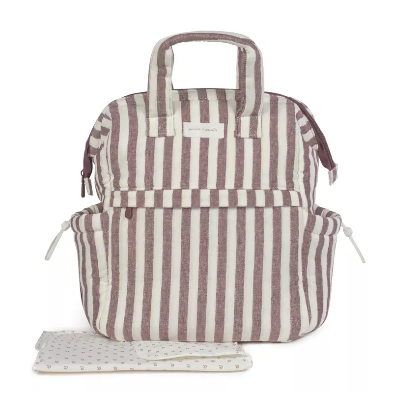 Elegante, funcional y resistente, la mochila maternal Cherry Rayas es el accesorio perfecto para acompañarte en tu día a día con el bebé.