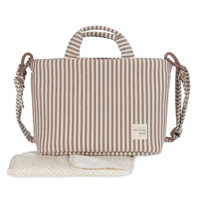 La BOLSA Canastilla Praliné Rayas Moka para cochecito es una alternativa funcional, ligera y con un diseño actual, ideal para llevar todo lo necesario del bebé en cada salida. Gracias a su amplitud, sus compartimentos bien distribuidos y su estética moderna, se convierte en un complemento muy práctico para el día a día.