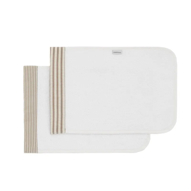 El Juego de 2 toallitas de Cambrass está fabricado confibras TENCEL™ Fibras botánicas y ecológicas que aportan absorción, suavidad y frescura, e incorporan un ribete de color. Su tamaño de 25x35cm. permite su uso tanto en casa como en cualquier otra parte porque son fácilmente transportables en el bolso maternal. Están especialmente indicadas para secar las babas del bebé, para proteger la ropa del adulto colocándola sobre el hombro o para empapar el sudor del bebé colocándola debajo de la cabecita.