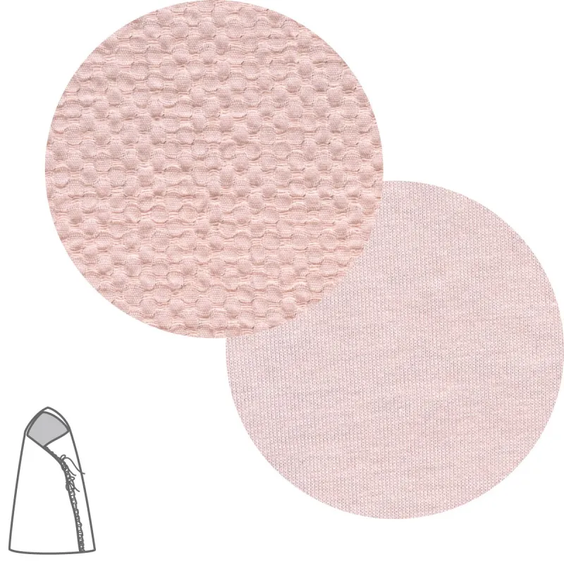 El saco para capazo, incluye cremallera en su parte inferior, abrochándose mediante lacitos de algodón. Además, dispone de ojales para adaptarlo al paso del arnés de la mayoría de capazos o sillas de paseo del mercado.
