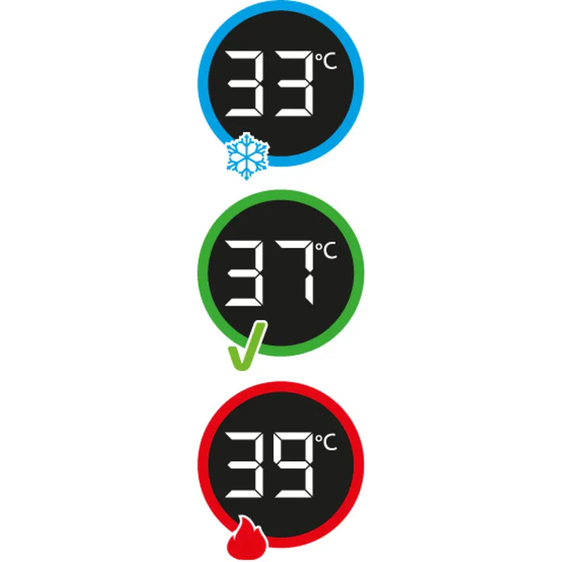 Termómetro HighSense integrado en el fondo para medir la temperatura donde el agua está más caliente, con indicador de color que avisa cuando está en el punto ideal.