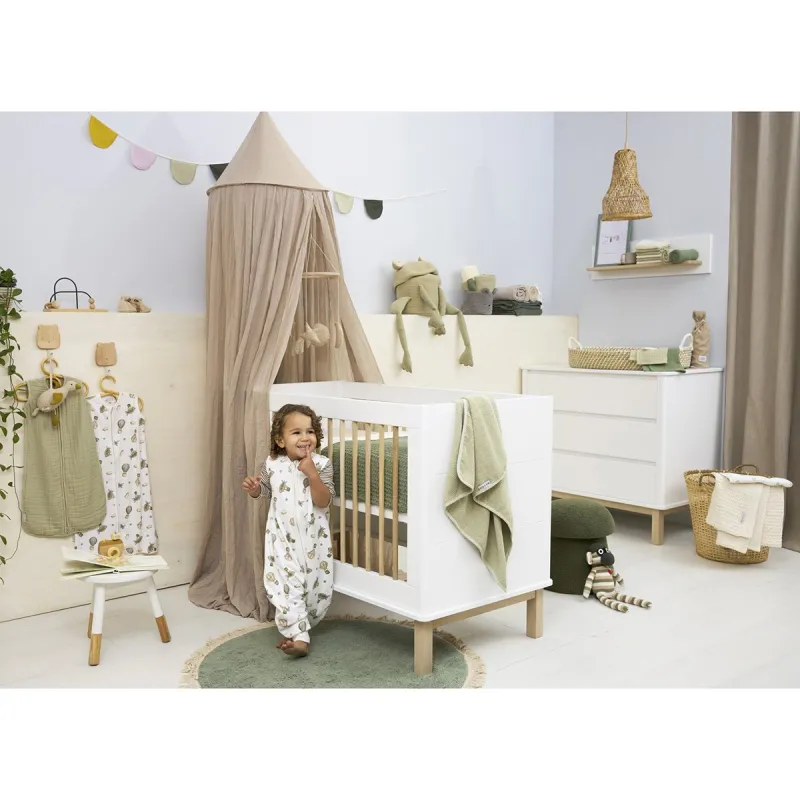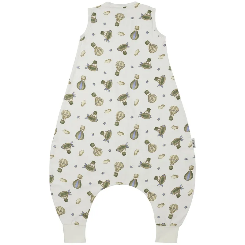 Con el pijama-saco con piernas Air Balloons de Meyco Baby, tu peque no solo dormirá profundamente, ¡sino que también podrá explorar! Este mono tiene un estampado unisex de globos aerostáticos, estrellas y nubes. ¡Perfecto para nuestros pequeños exploradores! ¿Qué tiene de especial un pijama-saco con piernas? Tu peque disfruta de la sensación cálida y segura de un saco de dormir, pero puede seguir descubriendo el mundo a su alrededor gracias a las perneras. El suave tejido de algodón resulta súper cómodo y es maravillosamente transpirable, ideal para los días calurosos de verano. Y también es perfecto durante las noches suaves de primavera y otoño. Solo tienes que combinarlo con un pijama calentito y dejar que tu peque sueñe con grandes aventuras mientras duerme. El pijama-saco con piernas de Meyco Baby está confeccionado con tejido de punto jersey de algodón 100% extra suave, lo que lo hace cómodo y agradablemente transpirable. En este diseño, cada pierna tiene su espacio, lo que da a tu pequeño durmiente libertad de movimiento. Muy práctico y seguro cuando tu peque ya empieza a caminar o ponerse de pie. La cremallera larga en la parte inferior facilita cambiar al bebé y poner o quitar el pijama-saco rápidamente. El pijama-saco tiene un valor TOG de 0.5. Cuanto mayor es el valor TOG, más cálido es el producto para tu peque.