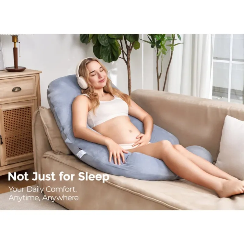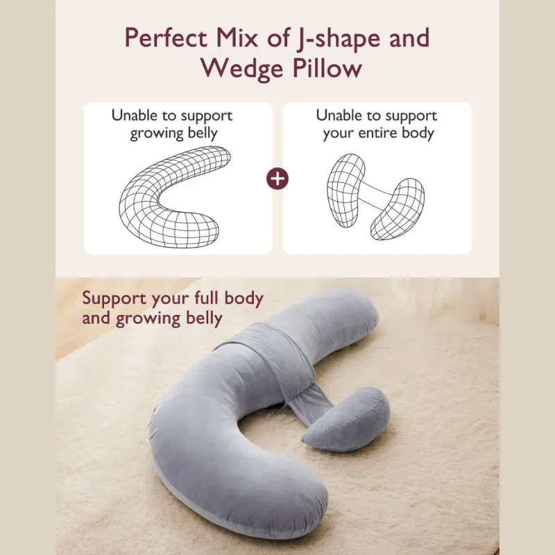 La almohada de maternidad Momcozy con innovador diseño en forma de F es la combinación perfecta entre una almohada en forma de J y una cuña en forma de W. Abraza el cuerpo por ambos lados, ofreciendo soporte completo desde la espalda hasta el vientre para una comodidad máxima durante toda la noche.