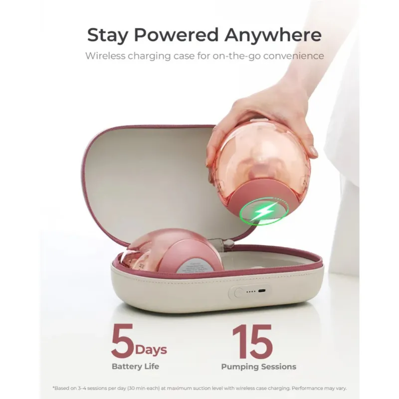 Disfruta de una experiencia completamente inalámbrica gracias a su estuche de carga de 1800 mAh, que proporciona hasta 15 sesiones de extracción o hasta 5 días de uso, según la frecuencia. Ideal para mamás con jornadas largas o rutinas exigentes, sin depender de enchufes ni cables.