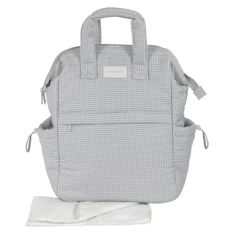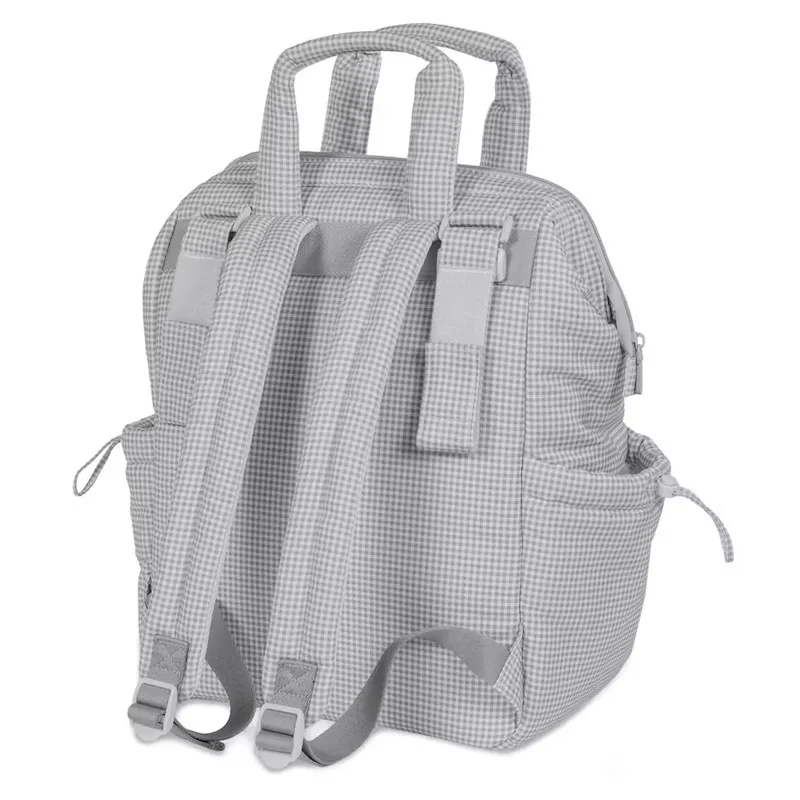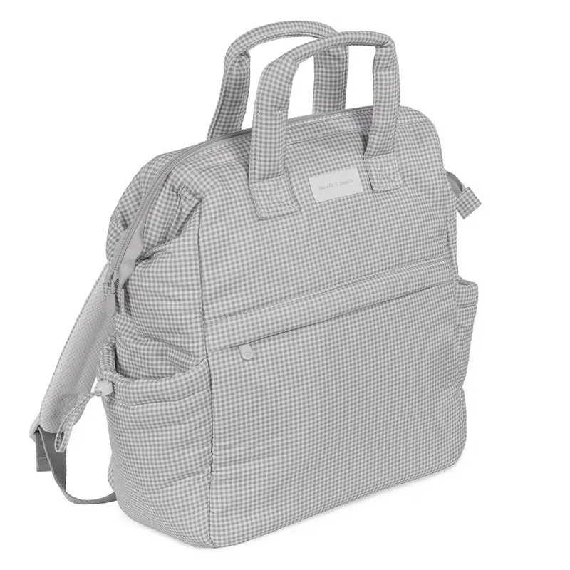 La mochila maternal Little Bloom Vichy gris de Pasito a Pasito es una opción muy completa para acompañar el día a día con el bebé, ya que combina gran capacidad, organización y un diseño elegante con un delicado estampado de cuadros. Su formato tipo mochila, sus múltiples asas y su cambiador incluido la convierten en un accesorio muy práctico para madres y padres que buscan funcionalidad sin renunciar al estilo.