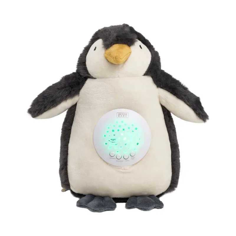 El buddy reproduce 10 suaves melodías de cuna que se enlazan automáticamente entre sí. Además, el pingüino incluye varios sonidos de ruido blanco, como latidos del corazón, agua corriendo, sonidos de rana y muchos más. Estos sonidos ayudan a reducir el ruido ambiental y permiten que tu hijo se relaje más fácilmente.