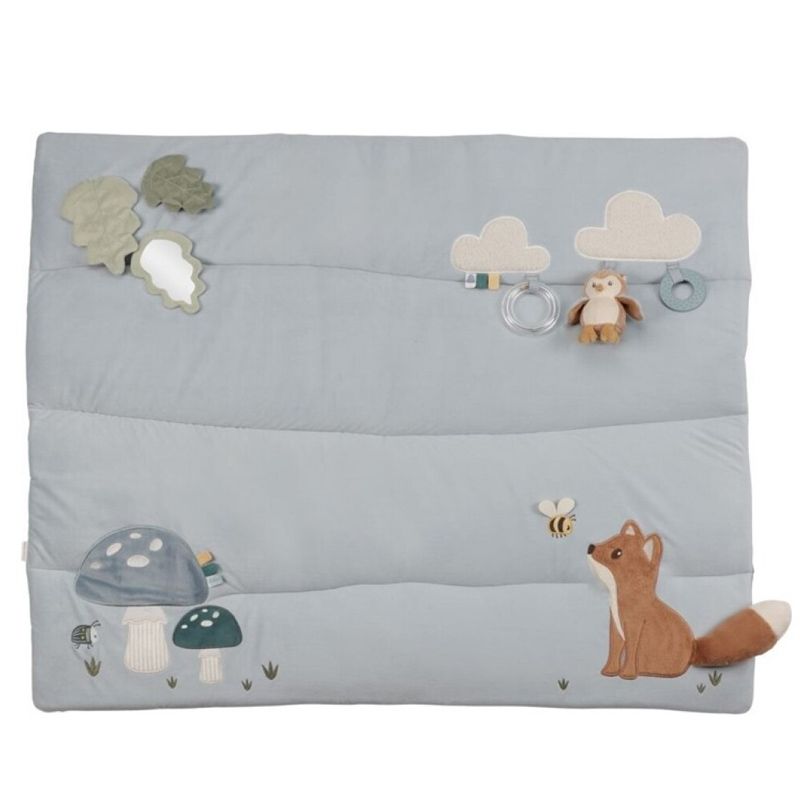 Sumérgete en la magia de los Forest Friends con esta encantadora manta de juegos azul. Diseñada para estimular la curiosidad y los sentidos del bebé, ofrece un sinfín de texturas y actividades para explorar.
