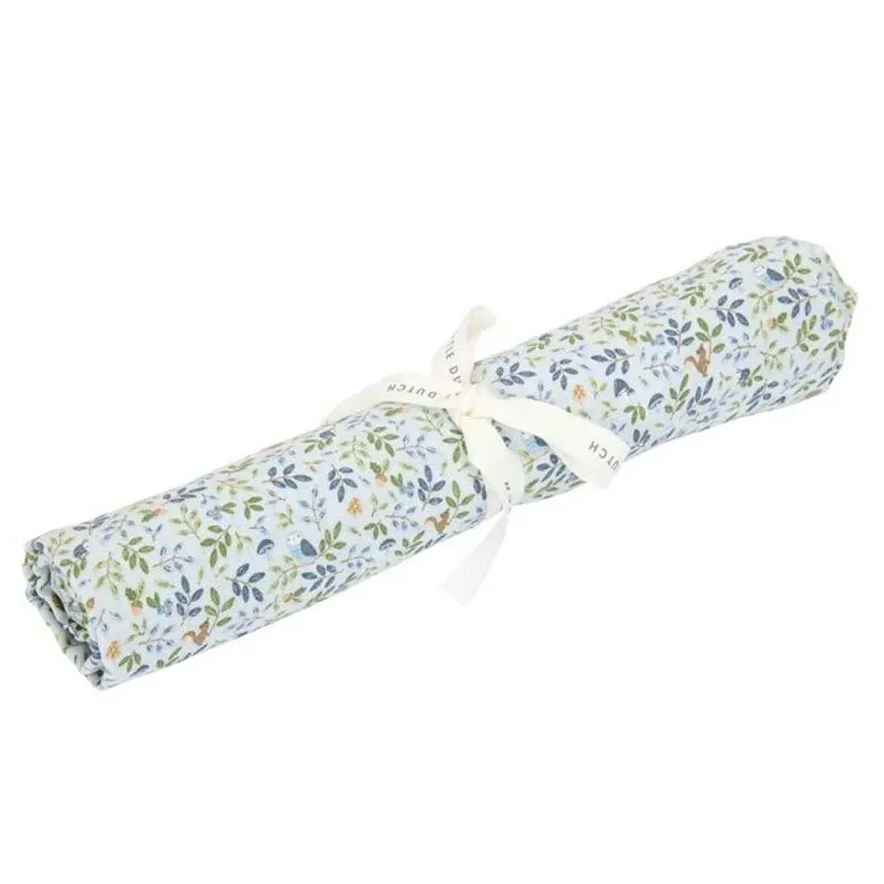 La muselina de 120 x 120 cm está confeccionada en 100 % algodón orgánico, ofreciendo suavidad y transpirabilidad para la delicada piel del bebé.