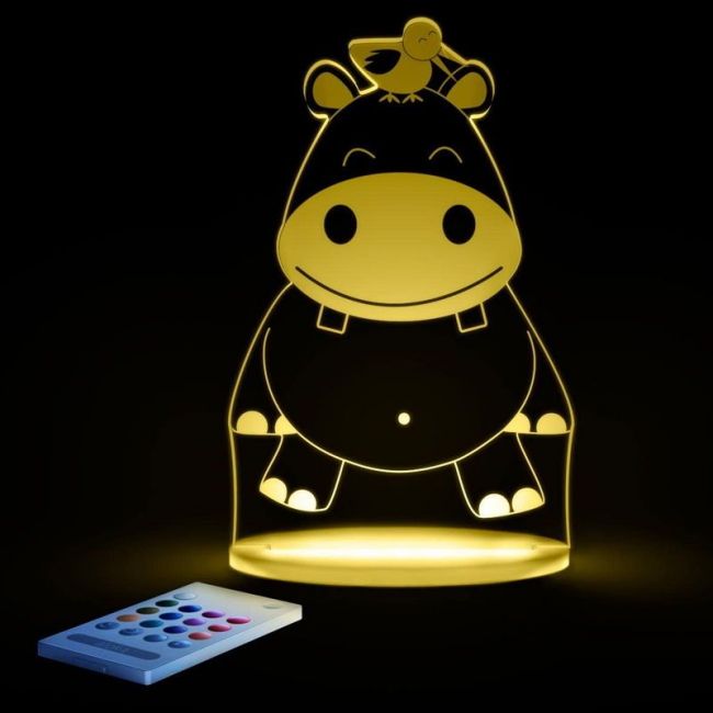 Lámpara de noche Aloka Sleepylight Hipopótamo con mando para que configures el color que desees e incluso que vaya variando.