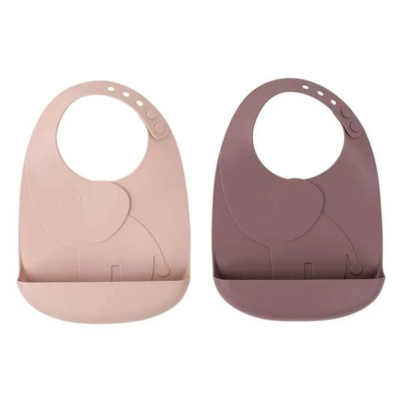 O jogo de babero Peekaboo Elphee em dois tons de pó combina perfeitamente com a louça da coleção Peekaboo. O elefante feliz está pronto para tornar a hora da refeição mais divertida para os pequenos convidados e menos desordenada.