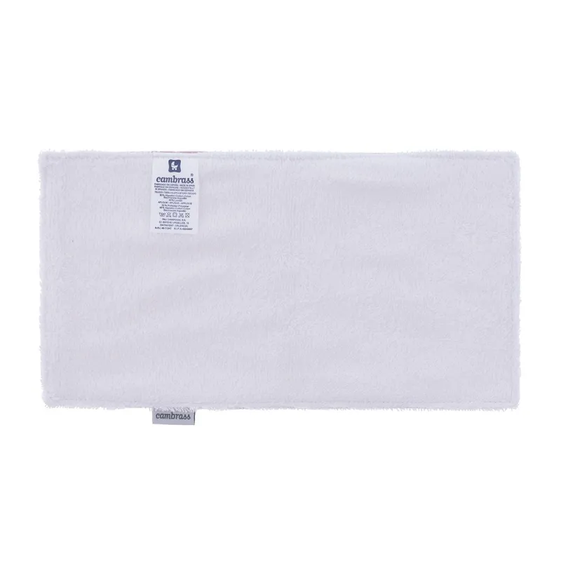 O babete da Cambrass tem forma retangular e é feito de fibras TENCEL™. Fabricado em Espanha. Por Cambrass.