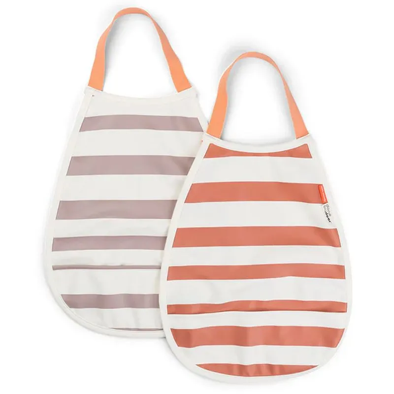 Facilite a hora da refeição com este conjunto de dois babadores impermeáveis práticos. São fáceis de limpar e possuem um bolso inteligente para pegar a comida que cai. Isso economizará muito tempo de limpeza.
