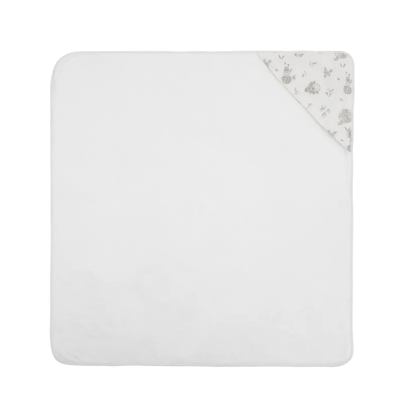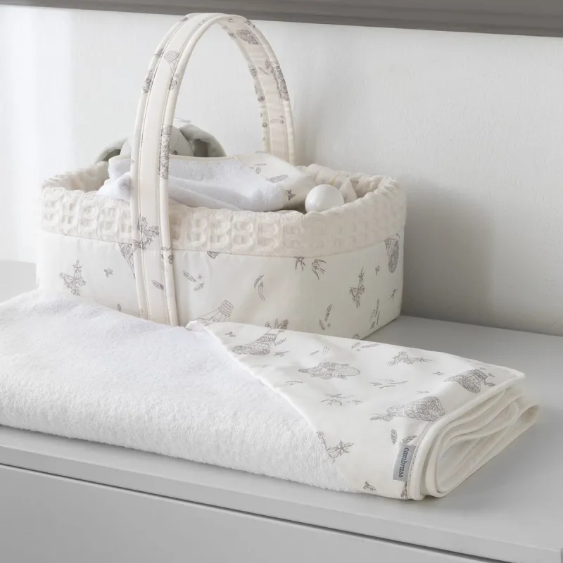 A Capa de banho está indicada para secar o bebê após o banho. Está fabricada com fibras de TENCEL™. Fibras botânicas e ecológicas, que evitam a aparição de alergias ou irritações na pele do bebê e oferecem a máxima suavidade ao não reter a cal da água durante a lavagem. Seu capuz, cujo interior está forrado com rizo, ajuda a manter o bebê coberto, conservando em todo momento seu calor corporal após o banho.