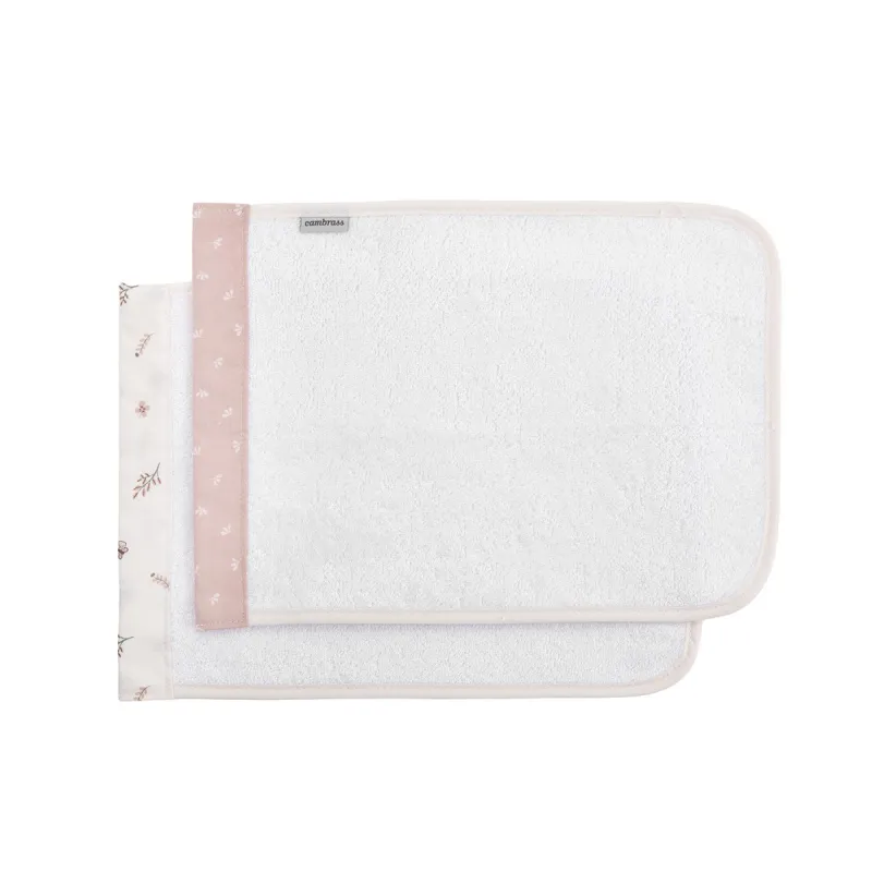 O Jogo de 2 toalhinhas da Cambrass é fabricado com fibras TENCEL™ Fibras botânicas e ecológicas que proporcionam absorção, suavidade e frescor, e incorporam um acabamento colorido. Seu tamanho de 25x35cm permite seu uso tanto em casa quanto em qualquer outro lugar, pois são facilmente transportáveis na bolsa maternal. Estão especialmente indicadas para secar a saliva do bebê, para proteger a roupa do adulto colocando-a sobre o ombro ou para absorver o suor do bebê colocando-a sob a cabecinha.