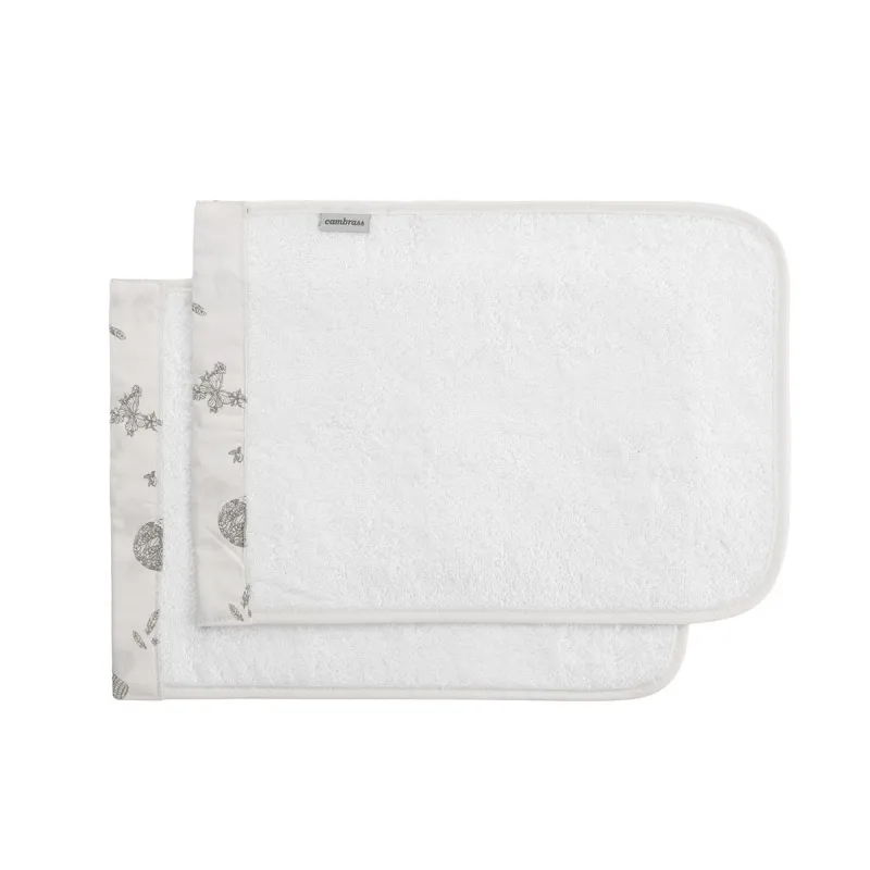 O Jogo de 2 toalhinhas da Cambrass é fabricado com fibras TENCEL™ Fibras botânicas e ecológicas que proporcionam absorção, suavidade e frescor, e incorporam um acabamento colorido. Seu tamanho de 25x35cm. permite seu uso tanto em casa quanto em qualquer outro lugar, pois são facilmente transportáveis na bolsa maternal. Estão especialmente indicadas para secar a saliva do bebê, para proteger a roupa do adulto colocando-a sobre o ombro ou para absorver o suor do bebê colocando-a sob a cabecinha.