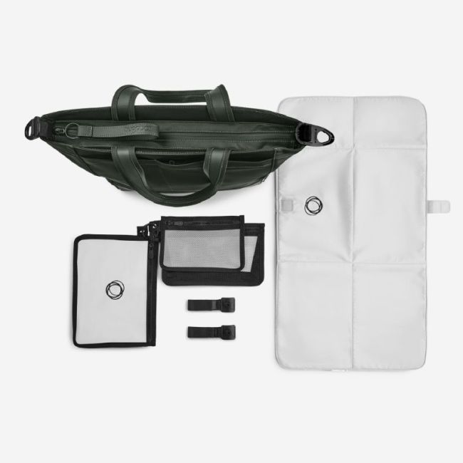 A mala inclui um trocador dobrável para que possa fazer trocas de fraldas rápidas e confortáveis em qualquer lugar. Além disso, possui um bolso oculto que mantém seu telefone seguro, e vários bolsos de fácil acesso para seus itens menores.