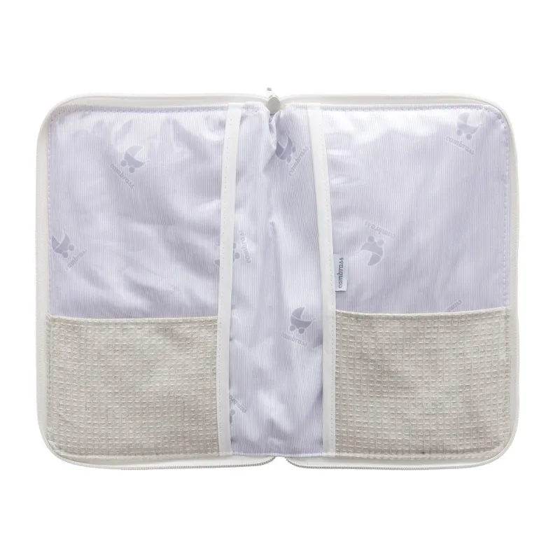 O Porta documentos de Cambrass está desenhado para guardar e transportar a documentação do bebé, especialmente a de caráter sanitário. A parte interior inclui diferentes compartimentos para organizar a documentação. Além disso, pelo seu tamanho é fácil de guardar dentro da bolsa maternal.