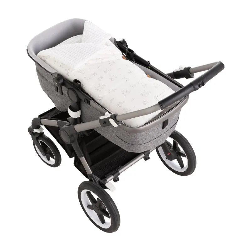 Capa leve em tecido batista estampado com reforço impermeável nos pés. Sistema de fixação S-PLUS, ilhós adequados para todos os tipos de arneses. Adicione estilo e conforto ao seu passeio!