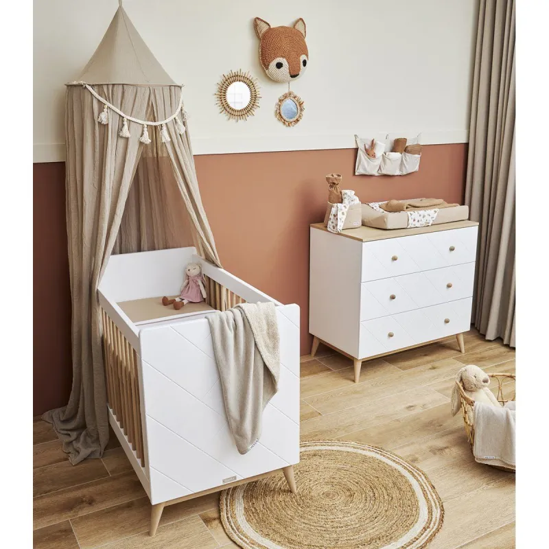 O dossel proporciona um ambiente elegante e clássico ao quarto do seu filho. Com seus sutis pontos bordados, o dossel cria um ambiente elegante sobre a cama. Não só é bonito, mas também oferece uma sensação de segurança adicional ao seu filho. Não só fica ótimo com um berço, mas também com uma cama infantil, uma cama juvenil ou uma cama de solteiro adquirem uma beleza encantadora de uma só vez graças a este mosquiteiro. (não inclui a estrutura) Fabricado com 20% de algodão e 80% de poliéster e também atua contra os mosquitos incômodos. Pendura-se facilmente com um gancho no teto.