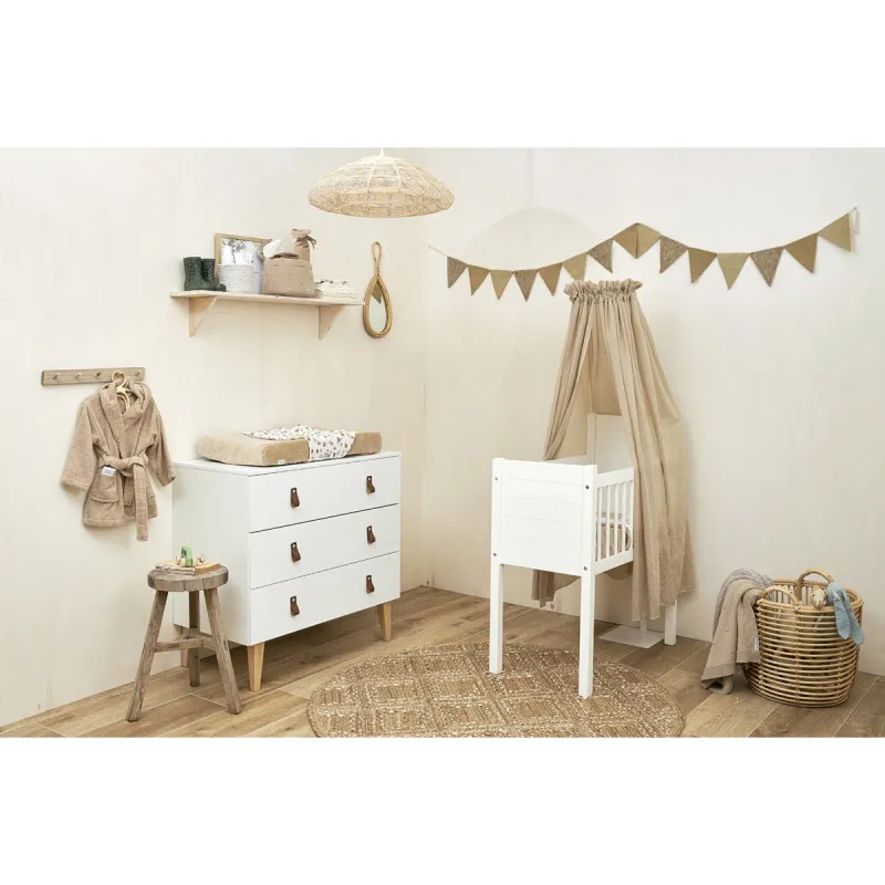 O dossel do berço cria um acento elegante e atmosférico sobre a cama, proporcionando uma sensação de segurança adicional ao seu pequeno (não inclui a estrutura).