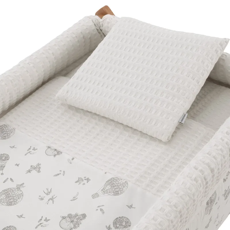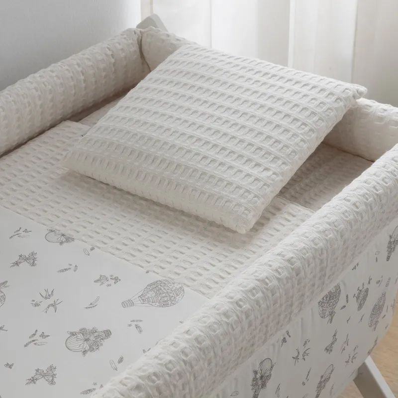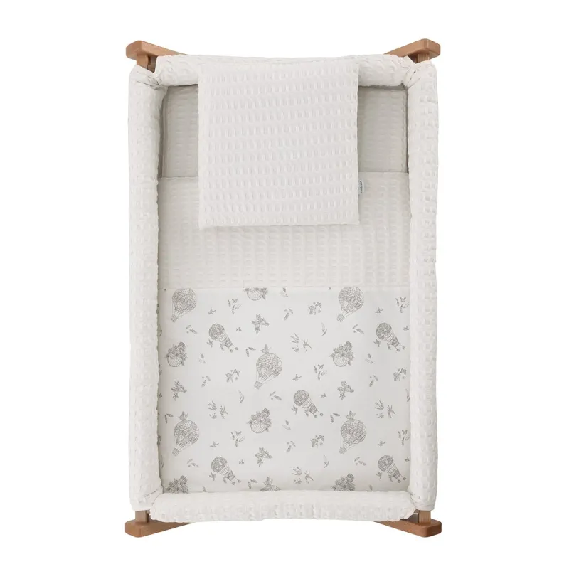 A minicuna com estrutura em forma de aspa da Cambrass é fabricada em madeira de faia. Permite o descanso do bebê em qualquer ambiente da casa durante os primeiros meses de vida graças à mobilidade que as rodas (com freio) proporcionam. Outros aspectos que tornam esta minicuna especialmente funcional incluem travesseiro, colchão e estrado de madeira de 5mm, suporte de madeira e sua vestidura costurada que inclui o edredom com enchimento. Por recomendação da normativa Europeia (EN 1130 UNE-EN 11890:2018) e do decreto real 1801/2003 sobre a segurança geral dos produtos, a minicuna não pode ser dobrável. Segundo a normativa, deve-se deixar de usar a minicuna assim que a criança puder sentar-se sozinha, levantar-se ou empurrar-se com as mãos e joelhos.