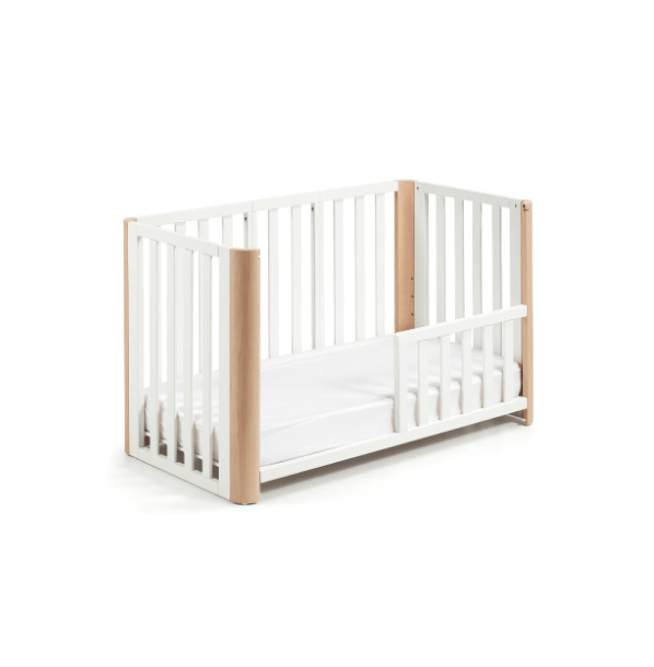 Berço evolutivo 4 em 1: Adapta-se a diferentes momentos do crescimento infantil graças às suas quatro configurações: minicama de co-sleeping, minicama independente, berço de 120 x 60 cm e cama Montessori.
