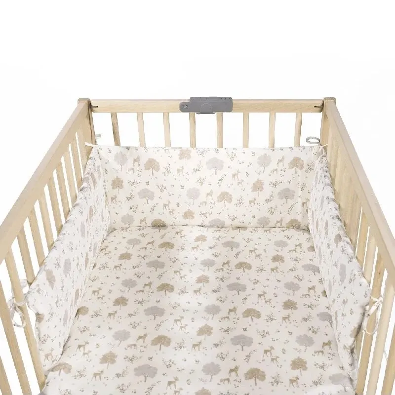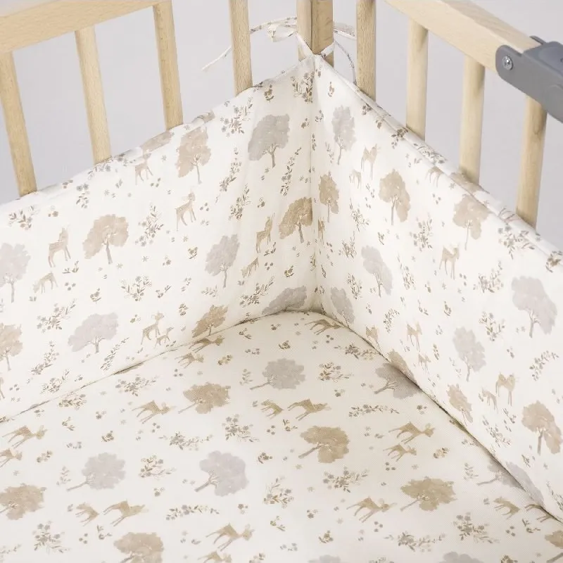 Design inspirado na natureza, com estampa de cervos e árvores em tons neutros, ideal para qualquer decoração infantil.