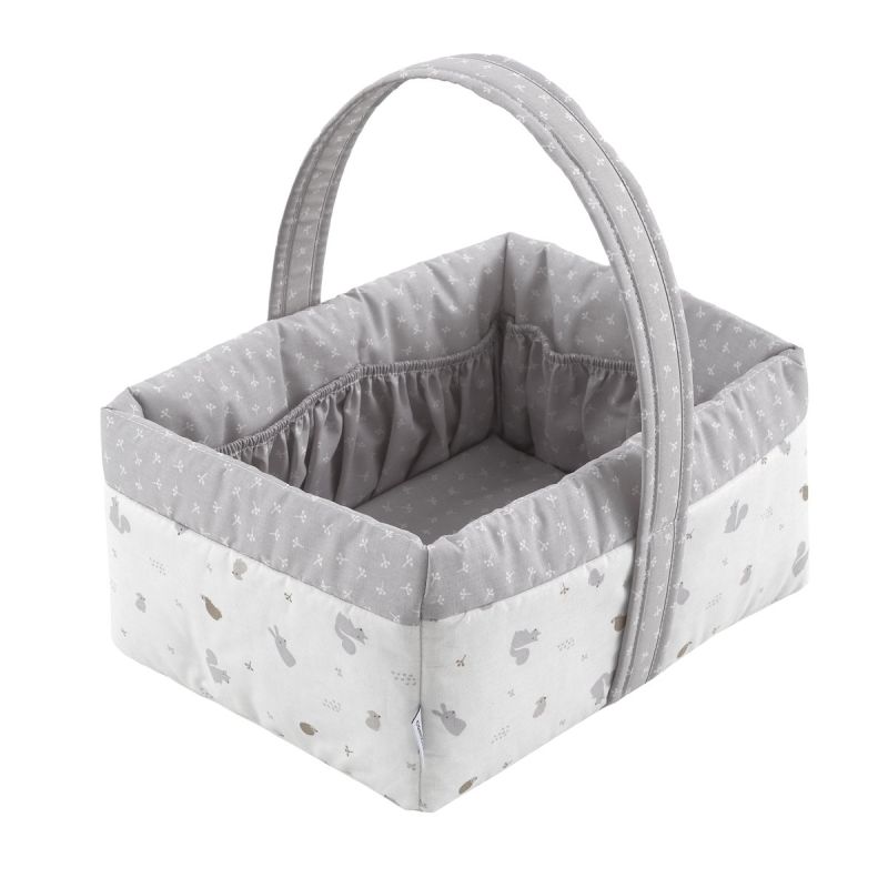 A cesta acolchoada de Cambrass serve para guardar os artigos de higiene do bebê. Fabricado na Espanha.
