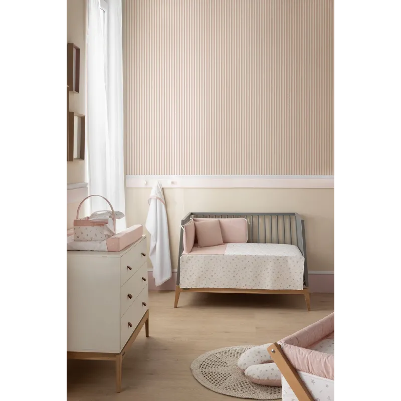 A cesta canastilha acolchoada da Cambrass serve para guardar os artigos de higiene do bebé. Fabricado em Espanha.