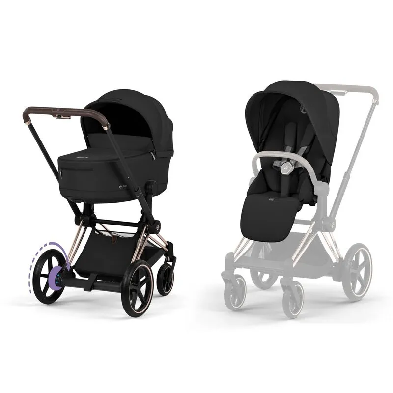 Sistema de viagem preparado: Permite alternar facilmente entre o capazo Priam Fold Lux, uma cadeirinha de carro CYBEX ou o Seat Pack, adaptando-se a cada etapa do crescimento.