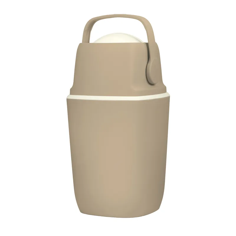 • Design compacto: formato cilíndrico moderno que se encaixa bem em trocadores, banheiros ou quartos.