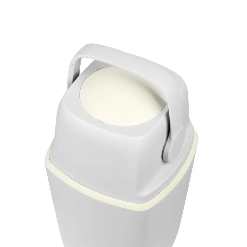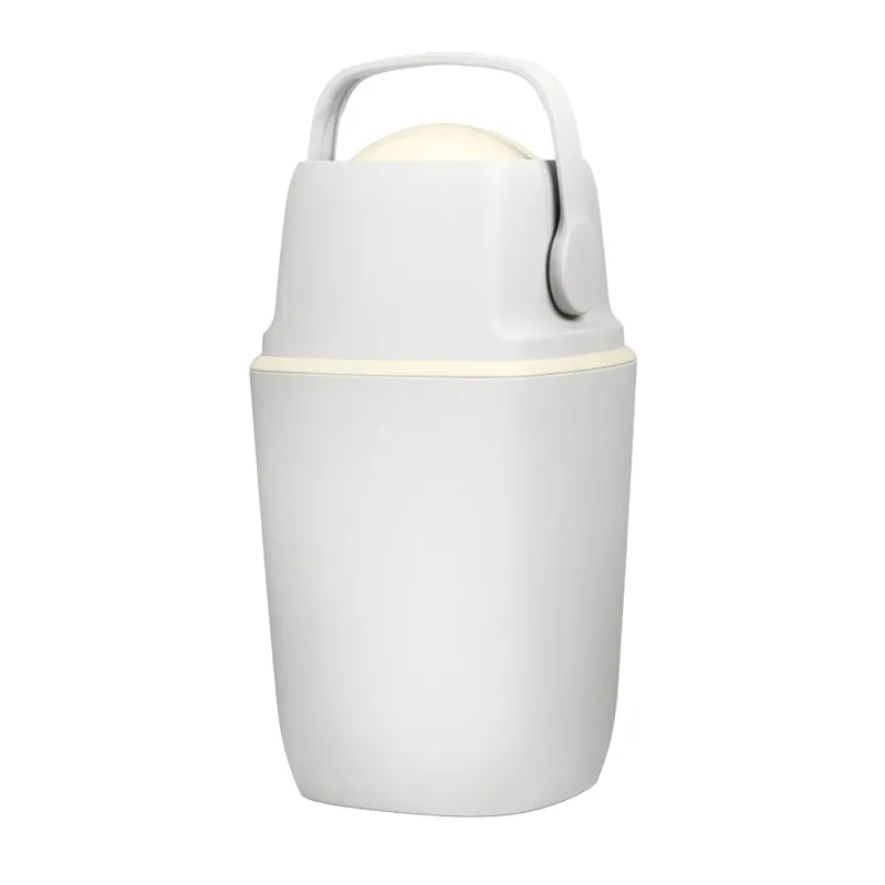 Design compacto: formato cilíndrico moderno que se encaixa bem em trocadores, banheiros ou quartos.