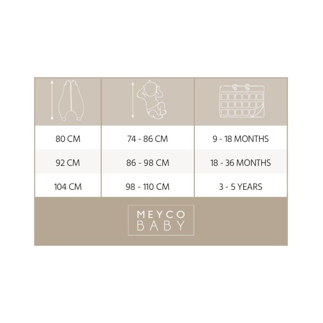 80 cm para usar de 7 a 12 meses aproximadamente e um comprimento de 69 a 80 cm. 92 cm para usar de 13 a 24 meses aproximadamente e um comprimento de 81 a 92 cm. 104 cm para crianças de 2 a 4 anos e um comprimento de 93 a 104 cm. O comprimento do seu filho é mais importante do que a idade para determinar o tamanho adequado do saco de dormir. Se o saco de dormir for muito grande, o seu bebê pode afundar. Nunca use um saco de dormir se a cabeça do seu pequeno couber na abertura do pescoço. Portanto, certifique-se sempre de usar o saco de dormir do tamanho adequado. Grande liberdade de movimentos graças às duas pernas. Ajuste longo, para que os bebês possam colocar os pés nas pernas à noite. Mais segurança assim que o seu pequeno começar a ficar de pé e a andar. 100% algodão: para um clima perfeito para dormir. Disponível em vários tamanhos. Não use muito detergente (também é melhor para o meio ambiente). Pode ser lavado à máquina a 30 graus no máximo. Após a lavagem, use uma bola de secadora para soltar bem o enchimento.