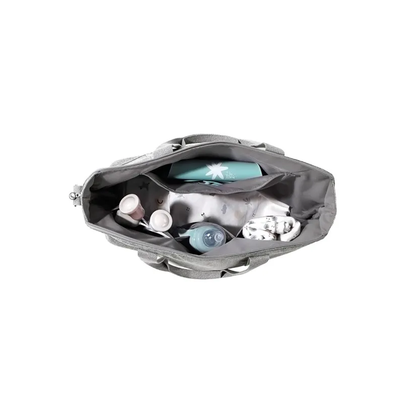 Conta com compartimentos internos que facilitam a organização de fraldas, roupas e outros acessórios.