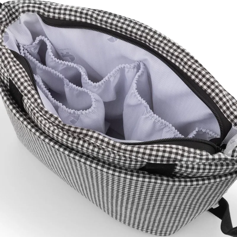 Um bolso organizador com alças curtas é ideal para pendurar no carrinho do bebê. Isso permite que você tenha fácil acesso a todos os complementos que precisar durante o passeio. Além disso, seu design com bolsos tanto no interior quanto no exterior oferece a possibilidade de organizar todos os acessórios de maneira ordenada. Isso é especialmente útil quando se trata de itens pequenos que poderiam se perder em um bolso maior. Em geral, um bolso organizador com essas características é uma excelente opção para manter tudo o que é necessário para o bebê ao alcance da mão durante os passeios.