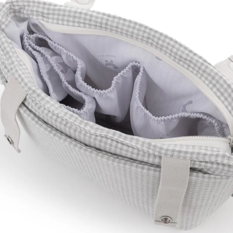 Um bolso organizador com alças curtas é ideal para pendurar no carrinho do bebê. Isso permite que você tenha fácil acesso a todos os complementos que precisar durante o passeio. Além disso, seu design com bolsos tanto no interior quanto no exterior oferece a possibilidade de organizar todos os acessórios de maneira ordenada. Isso é especialmente útil quando se trata de itens pequenos que poderiam se perder em um bolso maior. Em geral, um bolso organizador com essas características é uma excelente opção para manter tudo o que é necessário para o bebê ao alcance da mão durante os passeios.