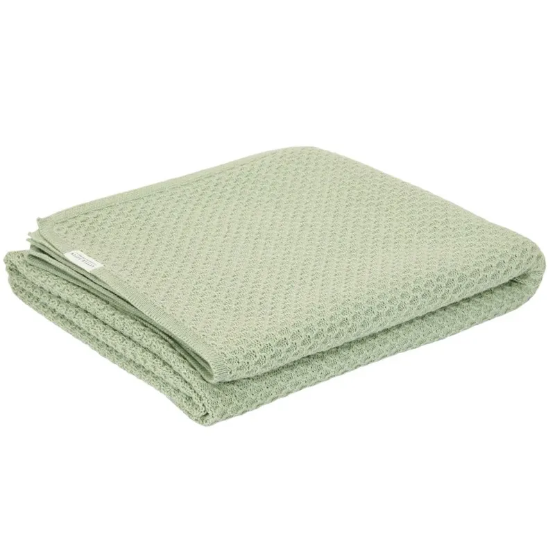 A manta para bebê de Little Dutch, confeccionada em algodão orgânico 100 %, é ideal para manter o pequeno aquecido e confortável durante o descanso. Seu design tecido com delicadeza e seu tom verde sálvia trazem um estilo sereno e natural ao quarto infantil.