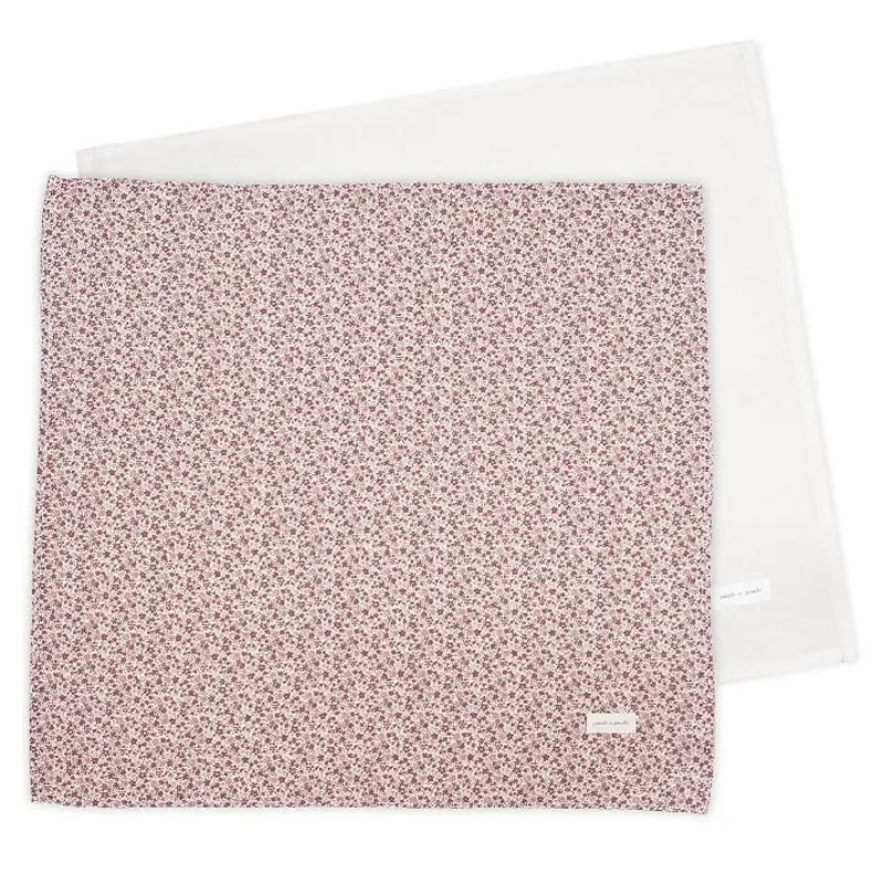 Pack prático e versátil: inclui duas muselinas, uma com o delicado estampado Cherry e outra lisa, ideais para múltiplos usos como arrulho, mantinha, protetor do carrinho, cobertor de amamentação ou trocador improvisado.