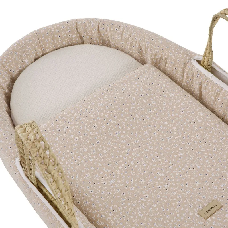 O moisés de palma acolchado da Cambrass é indicado para os primeiros meses de vida do bebê e, graças às suas alças, seu transporte é muito simples. Consiste em uma base de vime, colchão, colcha, travesseiro e vestidura, que pode ser coordenada com a decoração do quarto. Além disso, conta com todos os certificados que garantem a segurança do bebê, zelando pela sua saúde, uma vez que o vime do moisés é tratado para a eliminação de pequenas larvas de psocópteros que, em determinadas ocasiões, podem ser encontradas nas folhas de palma utilizadas na fabricação dos moisés. Este capazo é adequado para crianças que não conseguem sentar-se sozinhas, girar-se e que não conseguem se empurrar com as mãos e joelhos. Peso máximo da criança: 9kg. Se o moisés for destinado a ser usado com um suporte, verifique se as dimensões deste último correspondem às da base do moisés. Medidas da base do moisés: 390x800 mm. Fabricado na Espanha. Por Cambrass