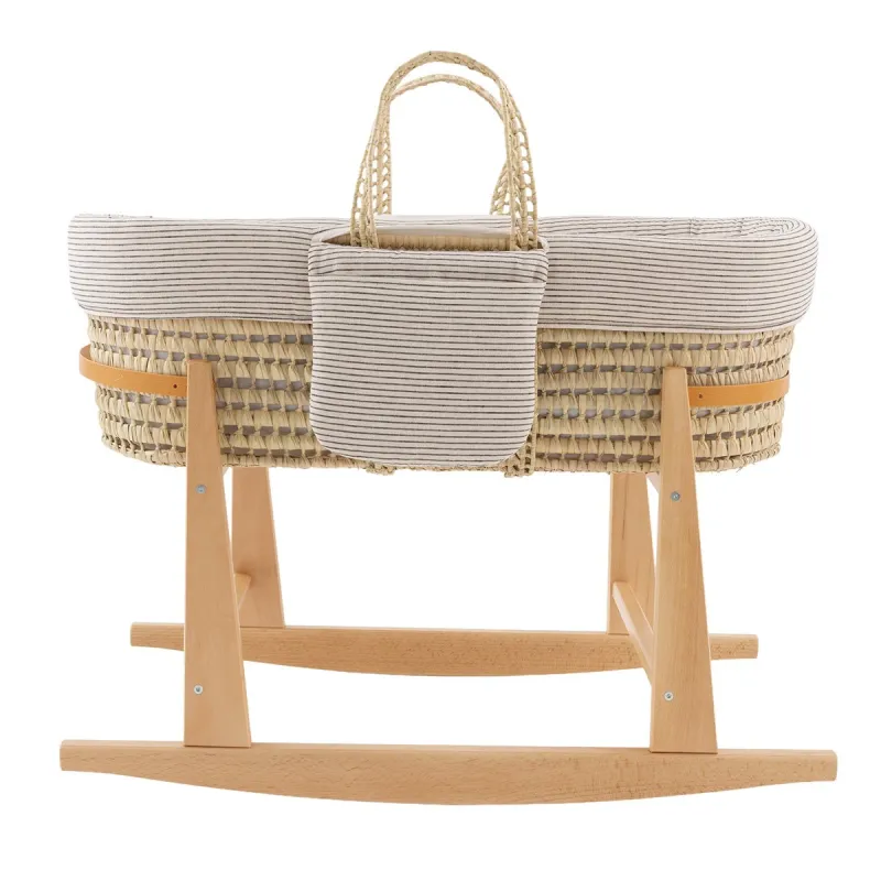 O moisés de palme acolchoado da Cambrass + patas de madeira, está indicado para os primeiros meses de vida do bebê e graças às suas alças, seu transporte é muito simples. Fabricado na Espanha. Por Cambrass.