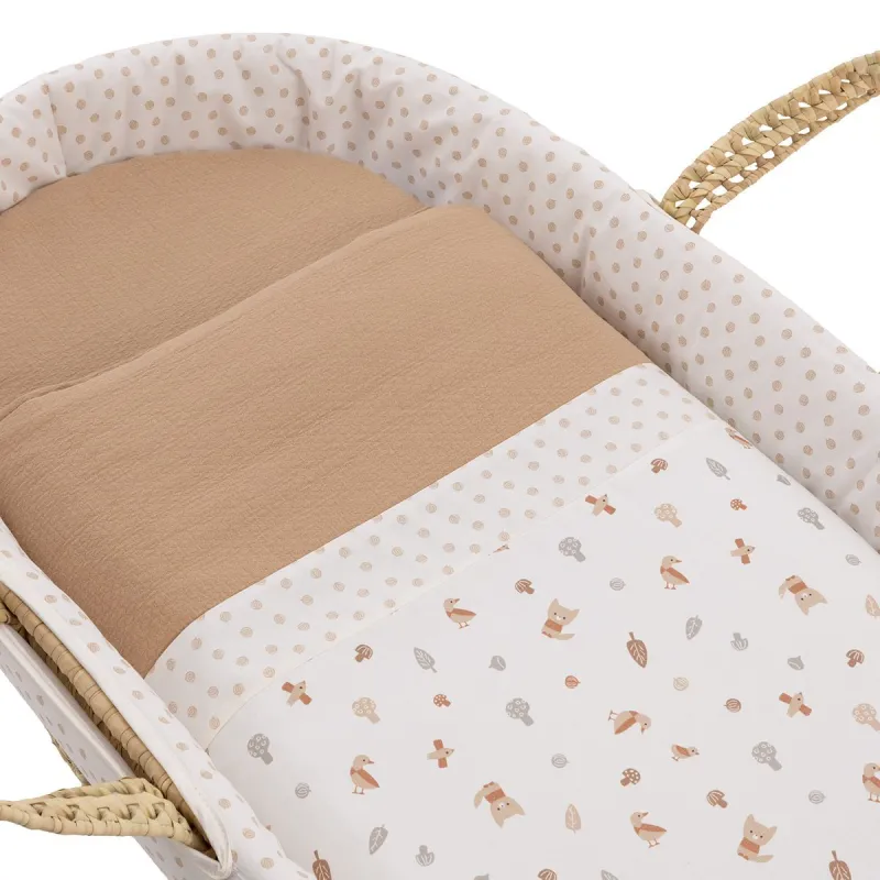 O moisés de palma acolchado da Cambrass é indicado para os primeiros meses de vida do bebê e, graças às suas alças, seu transporte é muito simples. Consiste em uma base de vime, colchão, colcha, almofada e vestidura, que pode ser coordenada com a decoração do quarto. Além disso, conta com todos os certificados que garantem a segurança do bebê, zelando pela sua saúde, uma vez que o vime do moisés é tratado para a eliminação de pequenas larvas de psocópteros que, em determinadas ocasiões, podem ser encontradas nas folhas de palma utilizadas na fabricação dos moisés. Este capazo é adequado para crianças que não conseguem sentar-se sozinhas, girar-se e que não conseguem se empurrar com as mãos e joelhos. Peso máximo da criança: 9kg. Se o moisés for destinado a ser usado com um suporte, verifique se as dimensões deste último correspondem às da base do moisés. Medidas da base do moisés: 390x800 mm. Fabricado na Espanha. Por Cambrass