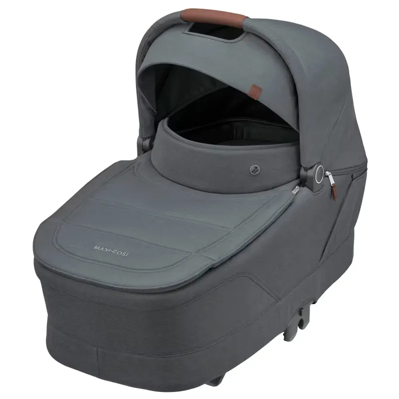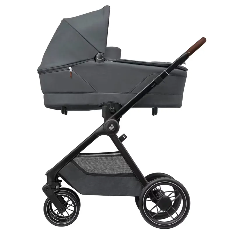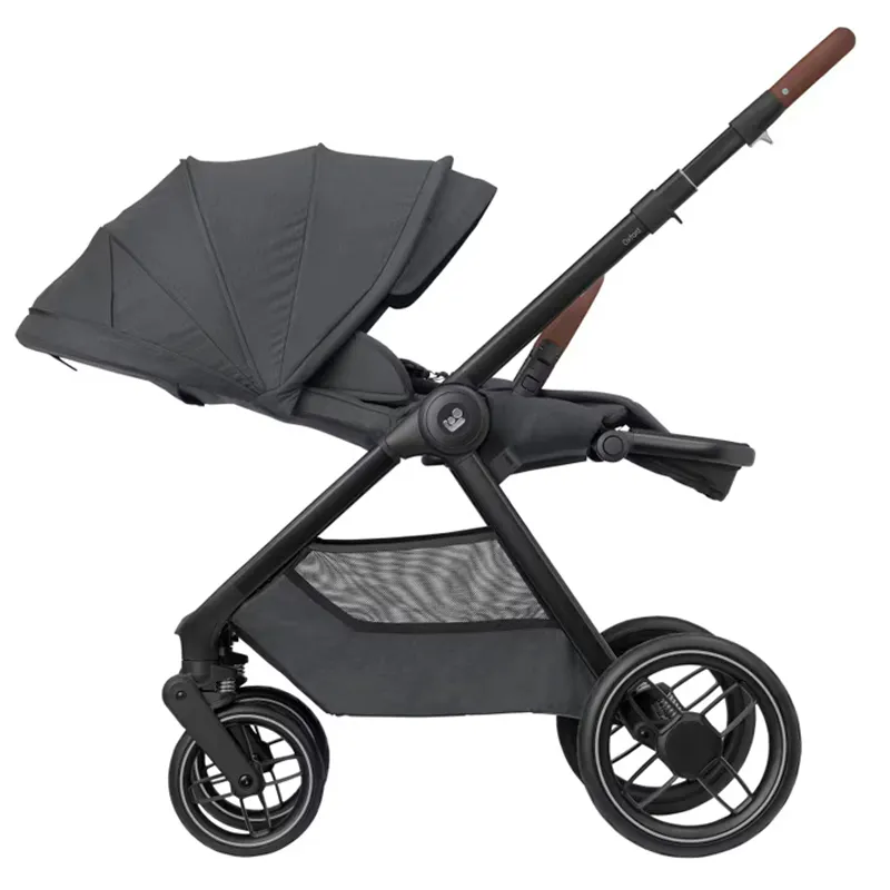 Inclui a cadeira de passeio Oxford e o cesto Sense, criando um sistema 3 em 1 compatível com cadeiras de auto Maxi-Cosi.