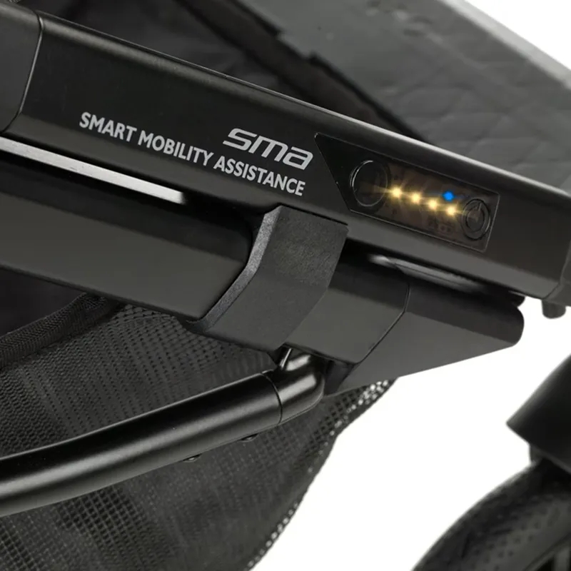 Sistema de segurança SMA com luzes LED: tecnologia inovadora que melhora a visibilidade em passeios noturnos e detecta movimentos no ambiente por meio de sensores ultrassônicos, aumentando a segurança da criança.