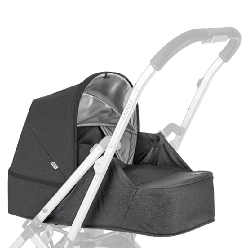 O conjunto para recém-nascidos transforma o MINU em um carrinho confortável e adequado para os primeiros meses, oferecendo um espaço seguro e acolchoado desde o nascimento.